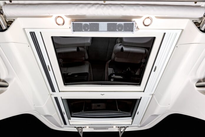 Dit dak, een elektrisch bediend zonnedak uit de 40-series, wordt gebruikt aan boord van een Chaparral 317SSX. Dankzij het slanke ontwerp is het dak vooral geschikt voor kleinere boten. Het zeer uitvoerig geteste veiligheidsglas en de waterdichte afdichting maken het dak robuust genoeg om de nodige bescherming te garanderen, zelfs bij stormachtig weer.