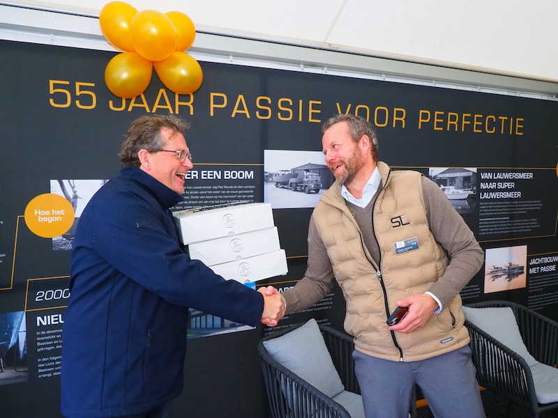 Zij die 5 april 2024 een bezoek brachten aan Motorboot Sneek is het ongetwijfeld opgevallen: een tentje aan de Hendrik Bulthuisweg op watersportbedrijvenpark ’t Ges in Sneek waar feest werd gevierd. Maar het was geen feesttent. Terwijl harde wind en regen zich meester probeerden te maken van de in-water-boatshow, staken de broers Bastiaan en Louis Jousma, respectievelijk 54 en 51, van wal met de start van de viering van het 55-jarig bestaan van hun werf Super Lauwersmeer.