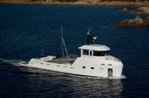 His portfolio spans 4 dozen luxury yachts, including the Lynx Yachts’ innovative (right) YXT series _ support yachts that can carry tenders, toys, sail boats, waver runners and accommodate 4 guests.