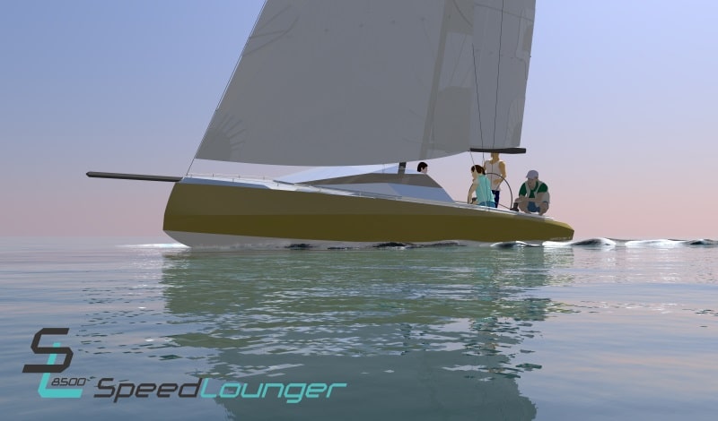 The company calls the 8.5m (28ft.) Speedlounger “a daysailer of a completely different breed.” It says it takes lounging seriously by offering “a completely equipped, huge relaxation cockpit, redefining the word leisure when enjoying a cold white wine and doing 10 knots of boat speed at the same time.”