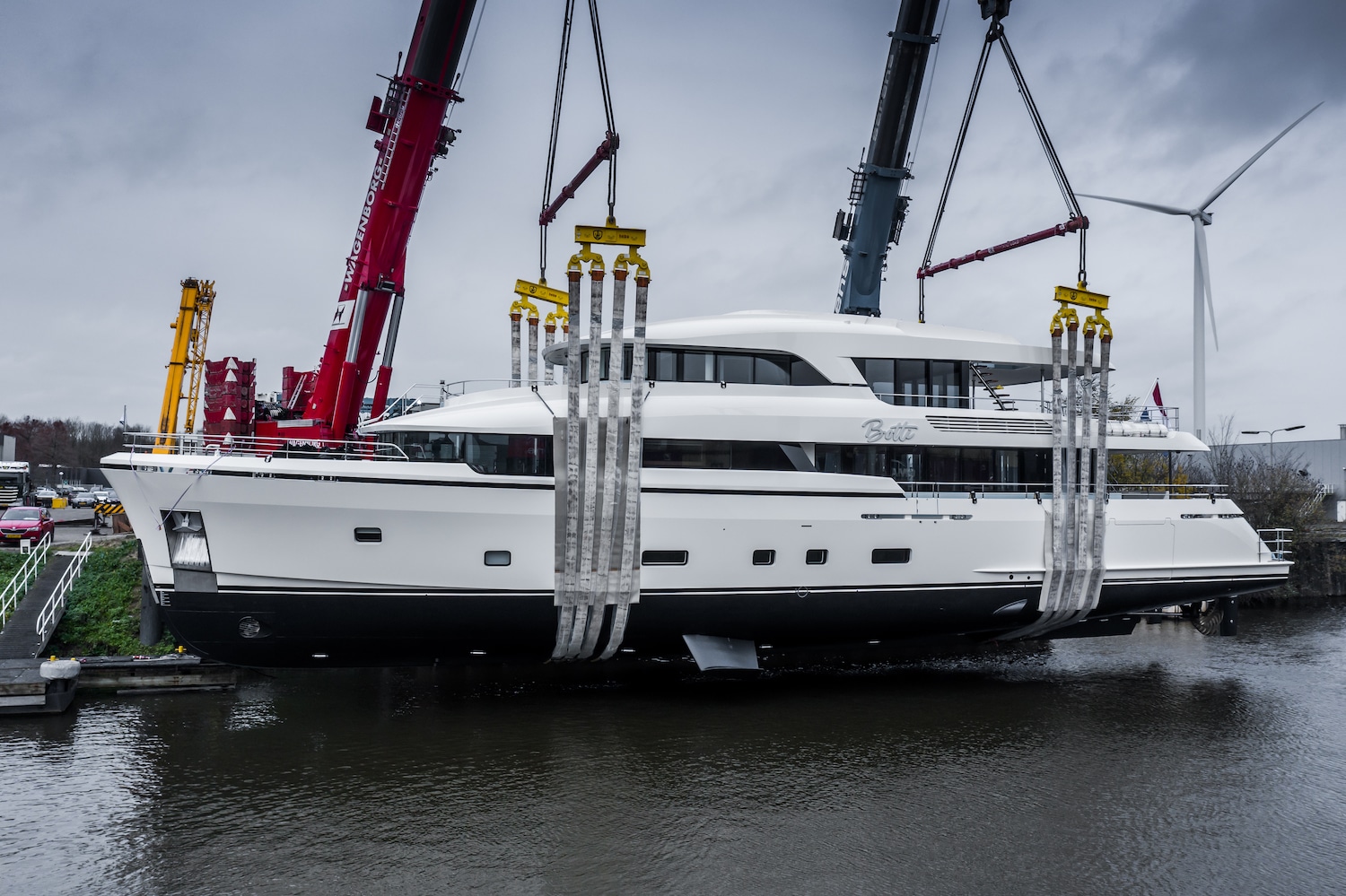 De tewaterlating in Den Bosch van de door Moonen gebouwde 36 meter lange Botti is een feit. Bouwnummer 200 is het derde motorjacht in de Martinique- serie, waarvan in 2018 als eerste de Brigadoon werd gebouwd. De Botti onderscheidt zich op enkele punten van haar zusterschepen.