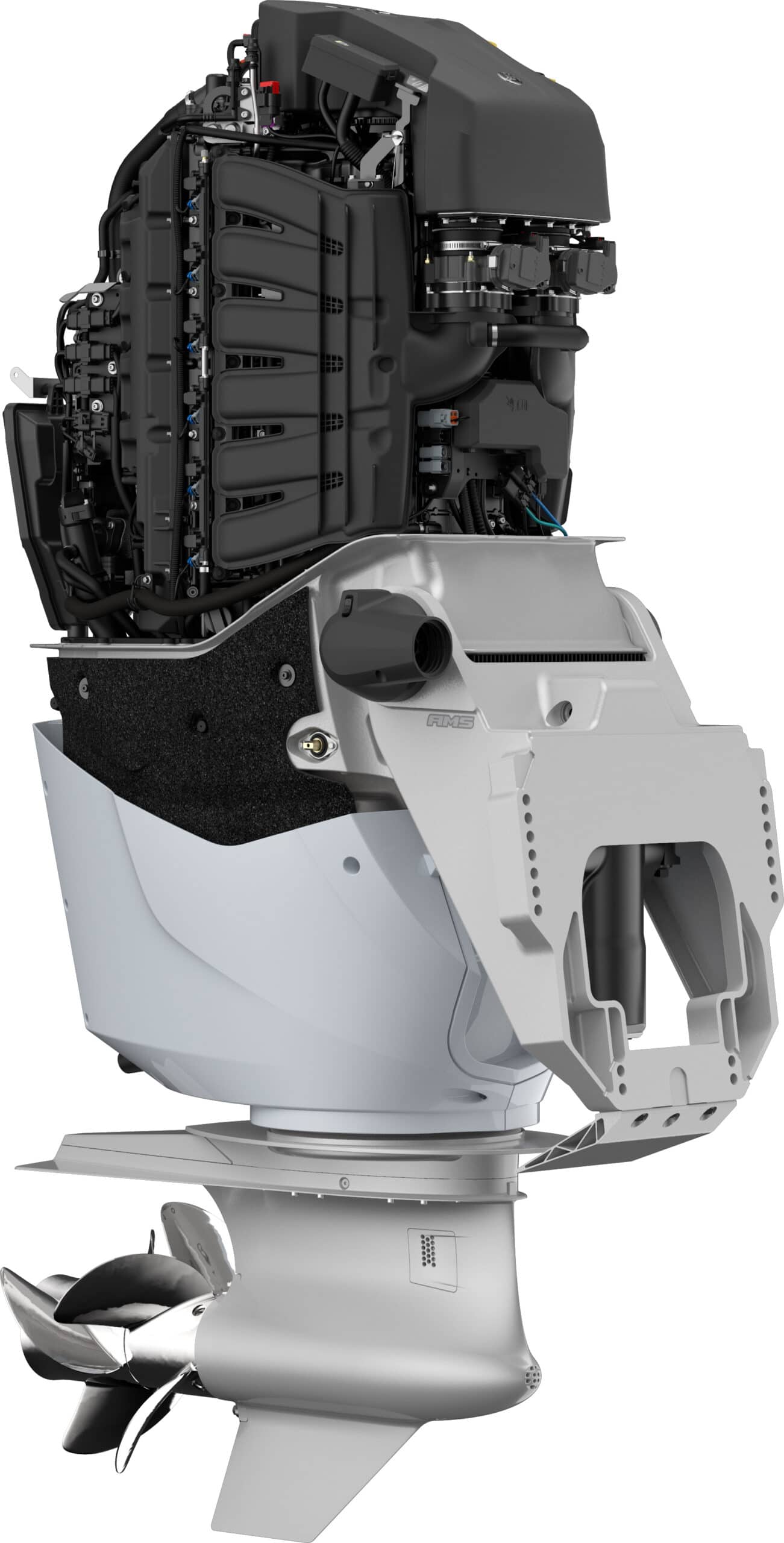 Het bestuurbare onderwaterhuis draait los van de motor onder water, terwijl het motorblok in een ruimtebesparende vaste positie blijft staan. Hierdoor is er ruimte voor configuraties met meerdere motoren en ontstaat een bredere stuurhoek.