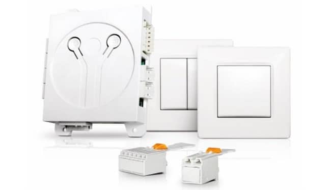 Een set bestaat uit een centrale unit met 6 dimbare aansluitingen (5A), één enkele schakelaar, één dubbele schakelaar en voldoende connectoren.