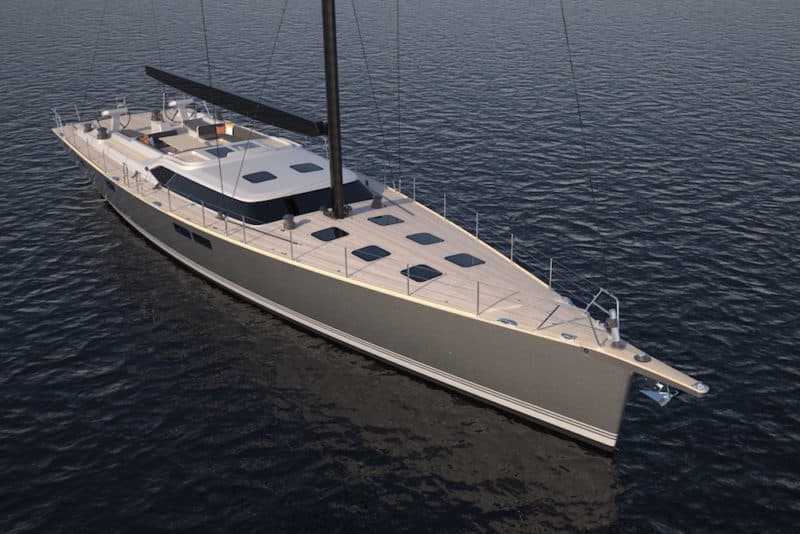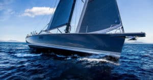 Contest Yachts has been making Lloyds-approved, composite hulls for more than 20 years. Its new flagship has been designed for distance cruising, racing and ‘very social sailing.” The yacht can accommodate up to 10 guests and sports a plumb bow with a bowsprit and optional furler. It has a broad stern, a single rudder and twin helm stations.