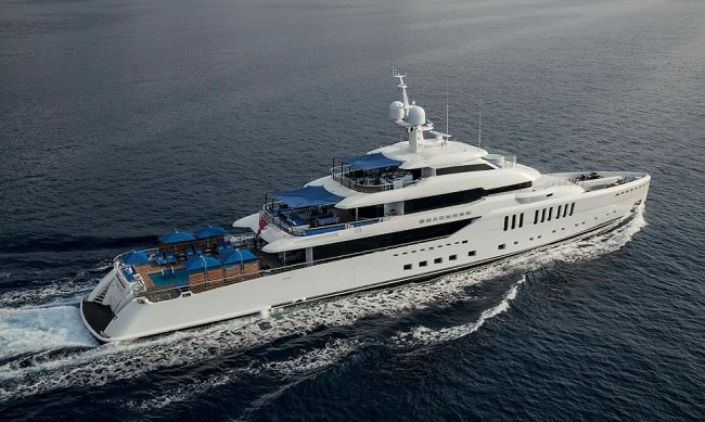 He broke new ground with Van der Valk Shipyard’s 19m Beach 600 Club (right) putting the engine under the transom swimming platform. The 360-degree saloon and the owner’s cabin moved up front.
