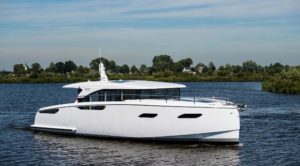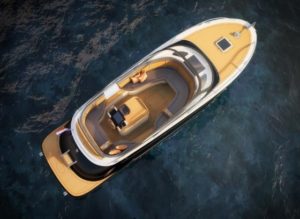 Rover has developed Concept Yachting 3.0. It stresses pure enjoyment of a boat and the sea without amenities such as a dishwasher or sleeping accommodations. The 28ft. Cor D. Rover (below) is a very high-end tender with matching luggage bearing the designer’s logo. Although it has berths, De Rover designed it for relaxing in comfort at your favorite waterside hotel. In the morning, you awake, shower, have breakfast and leave the hotel with your bespoke luggage for another hotel. “It’s a world without compromises allowing you to relish being on the water in style, eat in your favorite restaurants and sleep comfortably in hotels,” says Rover.