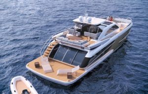 For the Taiwan-built FD85, Rover opted for space: 5 staterooms and an owner’s cabin on the main deck, a large aft deck and a flybridge. “You can tell Americans what you like. Or you can optimize their wish list. We did the latter,” says Rover. The FD85 was launched at Fort Lauderdale in 2017. By early 2018, 8 had been built.