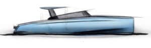 DUESSELDORF _ Domani, maker of the upmarket S30 daysailer, unveiled a fast and very elegant 32ft electric chase boat at the 2019 Duesseldorf Boat Show. Hailed as “the world’s most efficient, zero-emission chase boat,” the E32 is powered by a Torqeedo Deep Blue 80i electric engine that achieves a top speed of around 20 knots and a cruising range of about 200km at 5.4 knots.