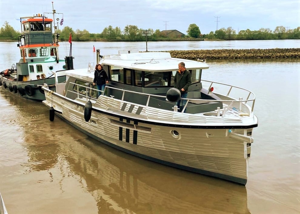 Vanmorgen, zaterdag 30 april, vertrok de eerste Globemaster 50 van Boelen Marine in Hardinxveld-Giessendam aan de Merwede naar Friesland Mariteam in Lemmer. Het schip wordt daar technisch afgerond. Vandaar dat de Globemaster nog niet zelf vaart, maar voor een duwsleper is gekoppeld. Vervoer over de weg gaat niet vanwege de doorrijhoogte bij viaducten en tunnels. De Globemaster is een ontwerp van Willem Nieland, die deze lijn ‘LRV’ noemt: Live aboard Research Vessel. Er zijn nog twee andere Globemasters 50 in aanbouw, terwijl ook andere Nieland ontwerpen op stapel staan. Meer hierover in het volgende nummer van Jachtbouw Nederland.