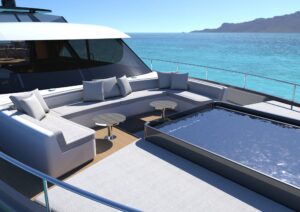 St-Barth Yachting insists its inaugural craft “has been developed from a different perspective than established brands” and comes with advanced technologies. Powered by twin Volvo Penta 1050 IPS systems, the St.-Barth-75 achieves a top speed of 28 knots.