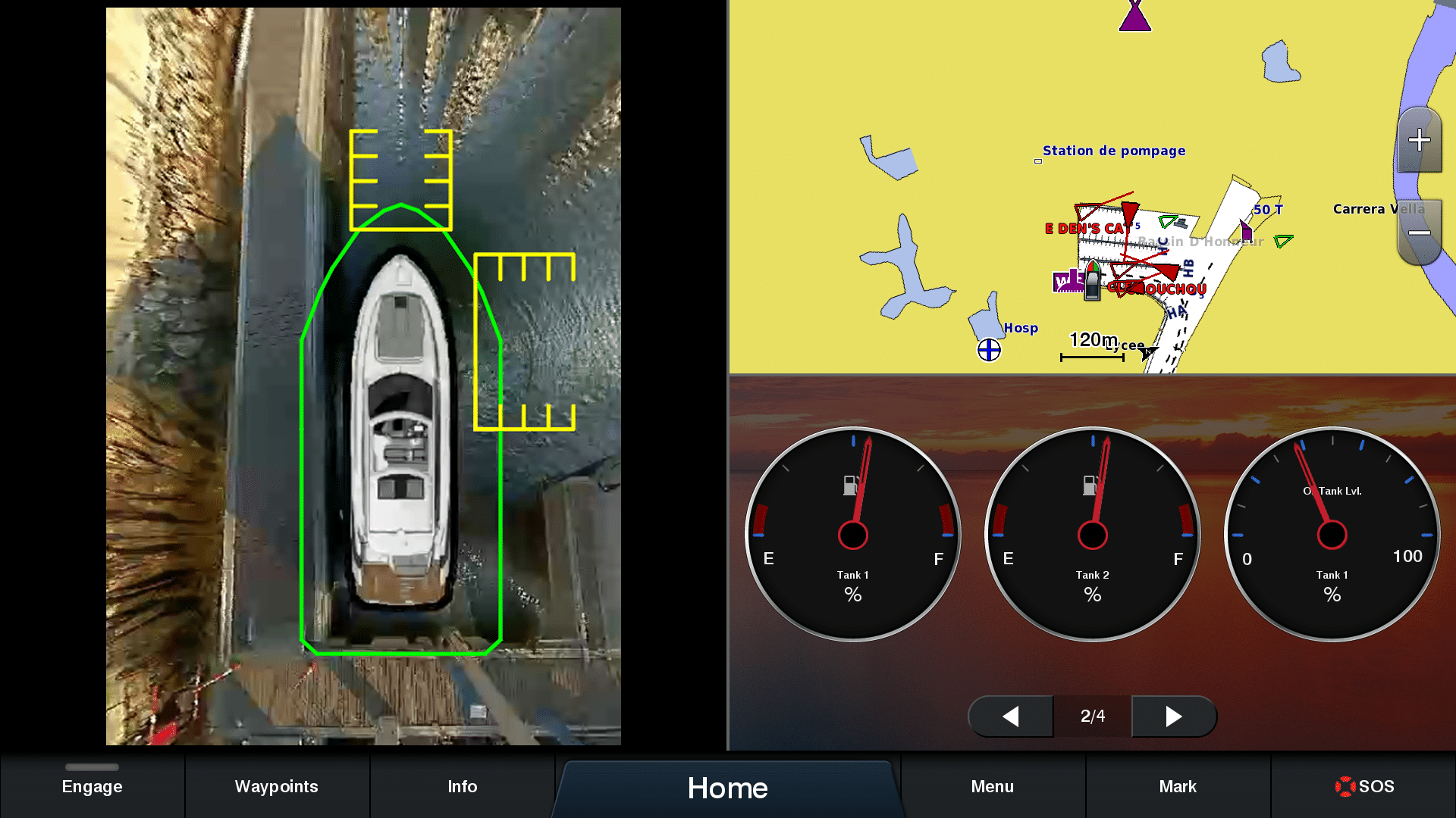 Wanneer het systeem is ingeschakeld, wordt een volledig beeld weergegeven met 360-graden realtime videobeelden rondom de boot, rechtstreeks op compatibele Garmin-kaartplotters of multifunctionele displays.