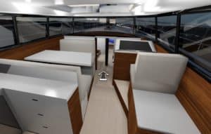 Of its Noordkaper series (below), the yard has already delivered 18 to date. The semi-custom Noordkaper, a Martin Bekebrede design, is available in steel or aluminum. Cherry wood inside is standard. The stand-out deckhouse offers comfort and safety, adding months to a