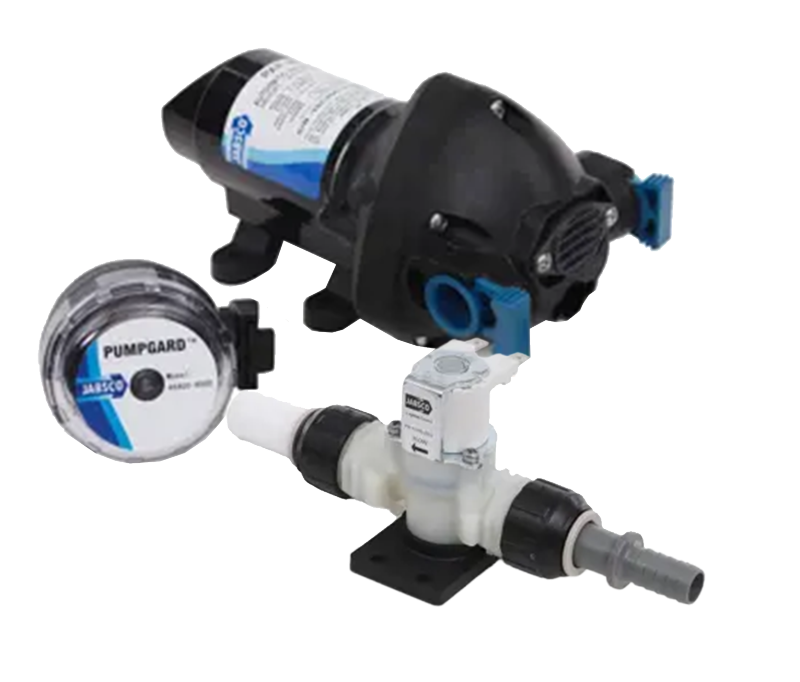 Voor het spoelen met zoet water aan boord is de Quiet Flush E2 uitgerust met een magneetventiel, snelkoppelingen, uitlaat en een geïntegreerd gaasfilter. Een dubbele terugslagklep beschermt tegen verontreiniging van het drinkwater en kan in elke richting worden gemonteerd.
