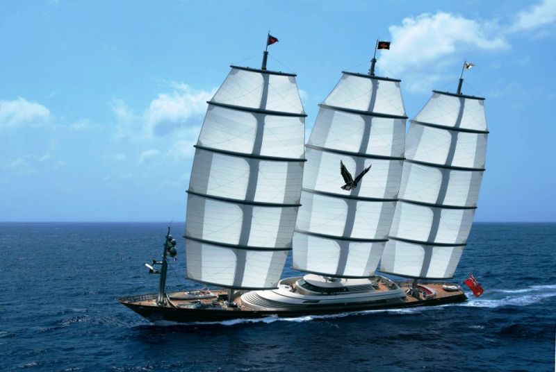 The Dykstra Naval Architects studio still monitors the innovative rig’s performance through data harvested by 60 fiber optic sensors embedded in its masts. The primary beneficiary is Magma Global, the UK builder of the 2 Dynarigs _ the Maltese Falcon and the 106m Oceanco-built Black Pearl. Magma and Dykstra also get data readouts of the Dykstra-designed Aerorig on ‘A,’ at 142m, the world’s largest sailing yacht designed to withstand a Category 2 hurricane.