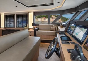 The Xtreme 78 Flybridge has advanced technology, such as a watermaker, a Humphree All Speed stabilization system, retractable capstans on the foredeck, and a telescopic anchor system.