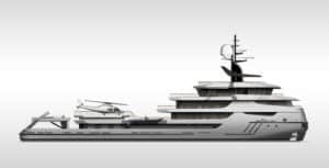 Wartena and Burgess speak confidently about the Icon-280 though a client and interior designer must yet be found. The yacht has 6 decks and room for 19 guests and 28 crew. Interestingly, the engine room deck is the lowest. It houses twin 2,040HP Caterpillar engines (top speed: 16.5 knots), all generators, retractable stabilizers and massive spare parts storage.