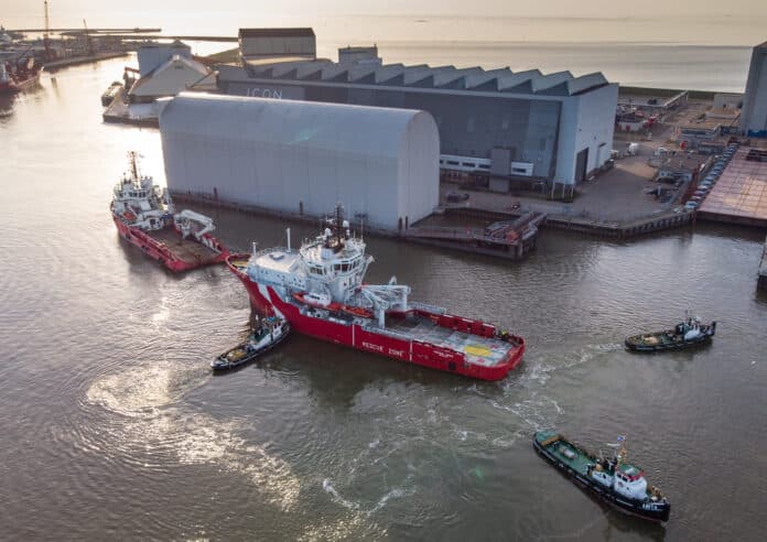 HARLINGEN – Icon Yachts, the Dutch refit and conversion specialist, is repurposing two large vessels, turning them into 70m custom explorer yachts. Project Master, an Offshore Rescue and Support craft, entered Icon’s drydock recently when the yard was already working on Project UFO.