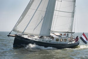 Pride of place in Van Meer’s designs goes to the Puffin (upper photo), a classic yacht with upright deckhouse windows and slightly negative bow. Recently a Puffin-37 was launched for which Van Meer tweaked the design: new lines, lighter materials and a slightly bigger cockpit. “In the last 22 years, some 50 Puffins have been built,” says Van Meer. They remain popular and he is now tweaking the design of the Puffin range while retaining its classic looks.
