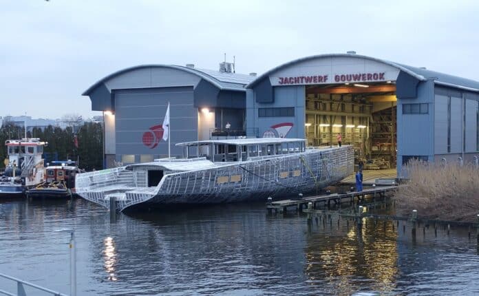 Jachtwerf Gouwerok (anno 1851!) liet in december 2022 ook al een Juan K-ontwerp te water. Dat aluminium casco was 54 meter lang.