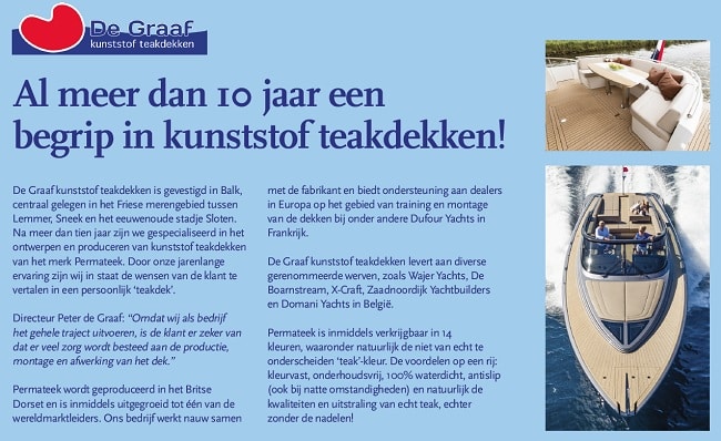 DE GRAAF WATERSPORT is één van de deelnemers met een bedrijfspresentatie in vakblad Jachtbouw Nederland met ook een uitgebreide bedrijfsprofielpagina op www.jachtbouwnederland.nl