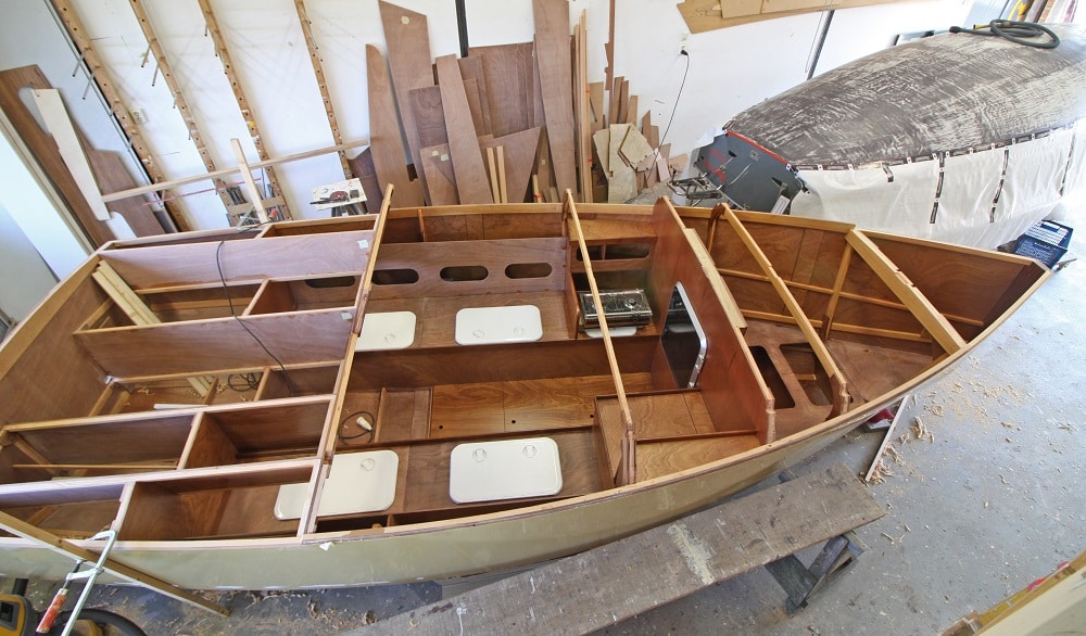 Bij Kolibri Jachtbouw zijn tevens CNC gefreesde bouwpakketten verkrijgbaar voor de doe-het-zelver. Wie een Class Globe 5.80 bouwpakket bestelt, heeft de keuze uit drie materiaalopties: okoumé, Bruynzeel hechthout en mahonie. Van den Brink: “De ontwerper heeft bepaald dat het okoumé van 10 mm bekleed moet worden met 1 kilo glasvezel per vierkante meter; en bij 9 mm moet er 1200 gram glasvezel per vierkante meter op. Mahonie is een sterkere houtsoort en daarvoor geldt 200 grams/m2. Daarom is mahonie de beste keuze.”