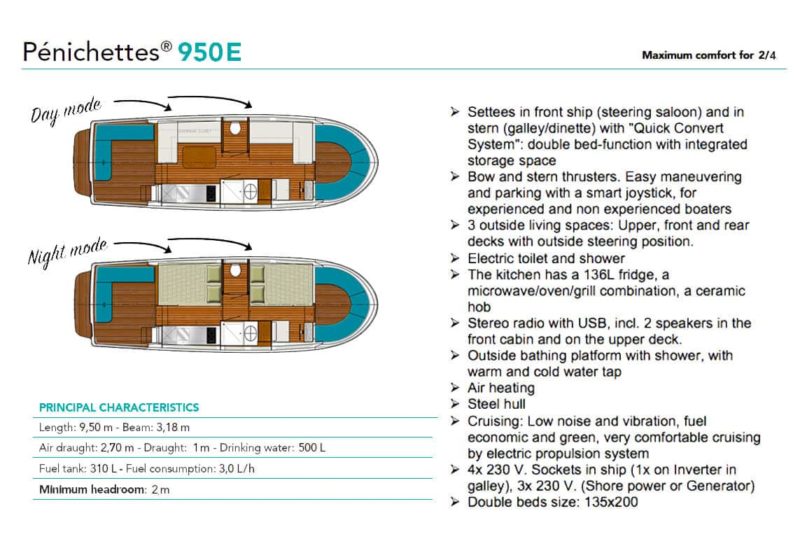 A Pénichette has joystick handling, requires no driver’s license and features the Linssen Integrated Propulsion and Power Configuration, a low-noise electric propulsion system powered by a diesel generator. “Linssen Yachts developed and built the for Locaboats,” says Beelen. “It gave us an opportunity to show off what we can do outside of our core business. We are keen to work for other parties.”