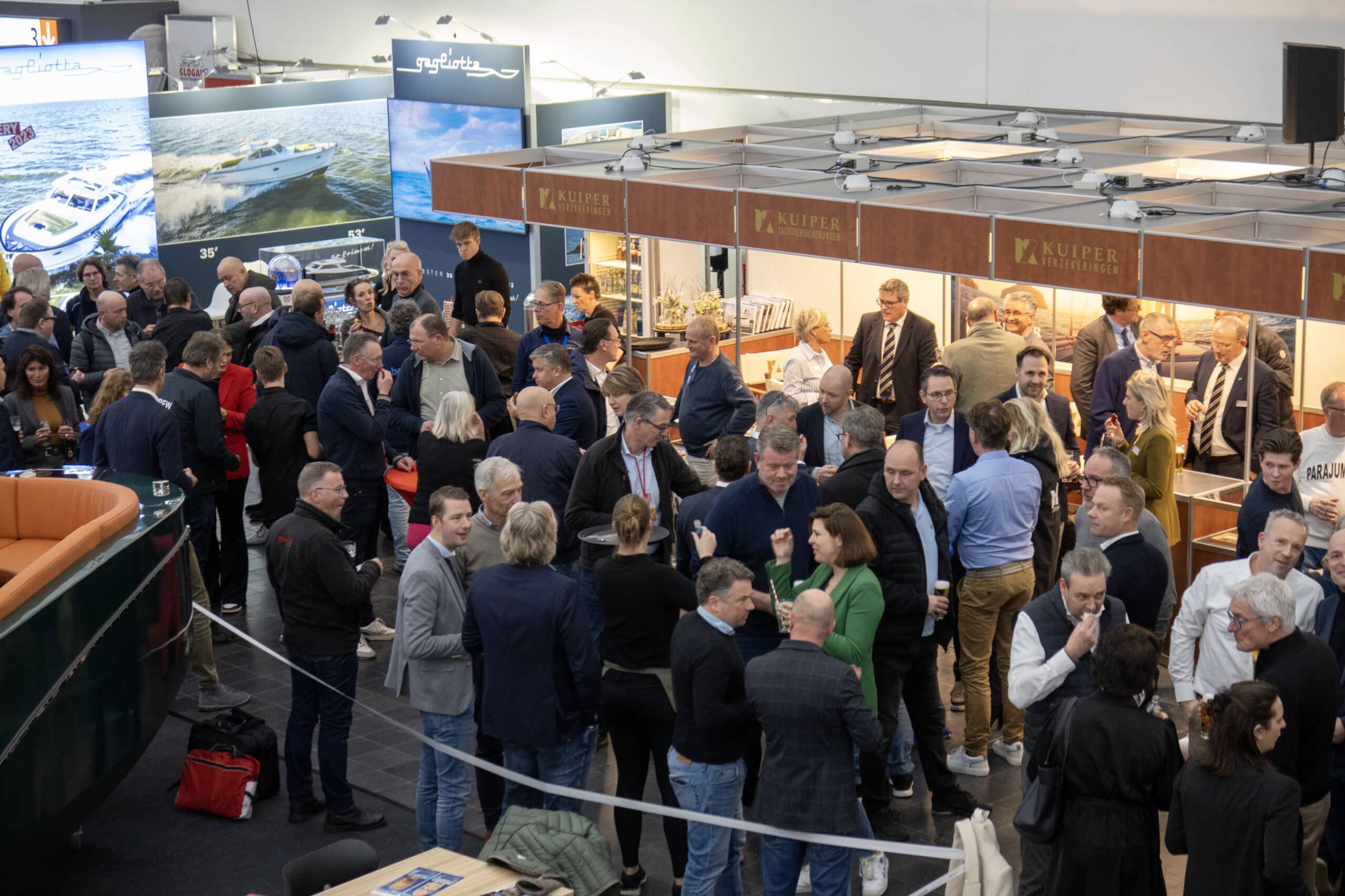 De borrel is dé ontmoetingsplek voor exposanten en andere watersportprofessionals en blijkt een ideale gelegenheid voor het leggen van contacten in een informele sfeer.