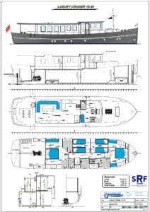 In november is op de werf van SRF Shipbuilding in Harlingen begonnen met de bouw van een nieuw luxe motorschip van 19.95 meter. Kenmerkend voor de SRF Luxury Cruiser 19.95 is de moderne belijning en platte achterzijde. De luxe motorschepen die tot nu toe zijn gebouwd door de Nederlandse werf, hebben stuk voor stuk een ronde spiegel. “Door de platte kont heeft dit nieuw te bouwen schip een veel breder achterdek. Daar bevindt zich een opklapbaar zwemplateau en een grote rondzit,” legt Marco Brattinga, projectmanager