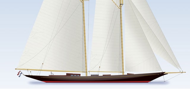 That search is now over: Turquoise Yachts (Istanbul) has purchased it and had major changes made. Dykstra Naval Architects turned the schooner into a sloop-rigged yacht, going from a two-masted to a one-masted vessel.