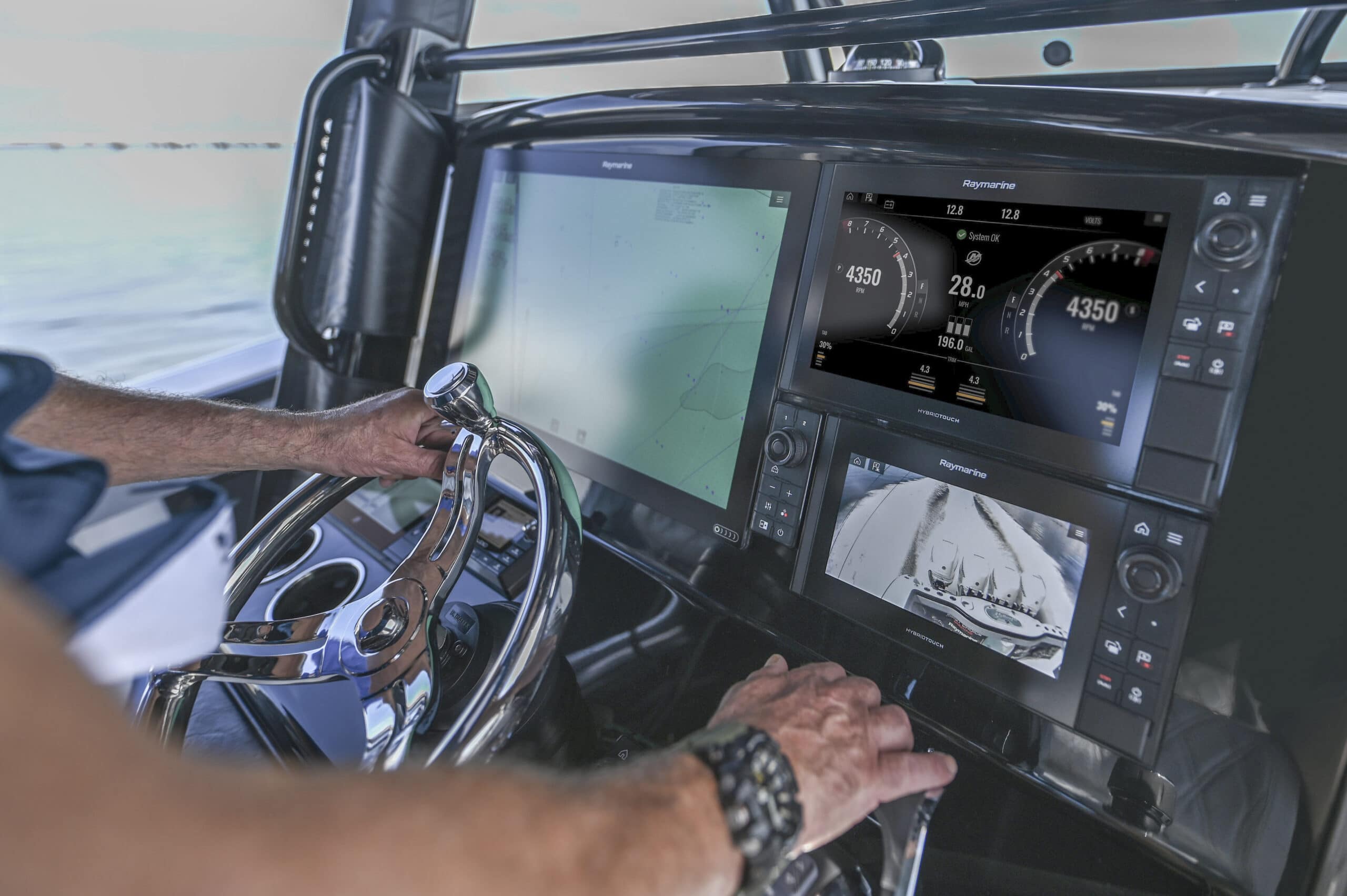 Raymarine Axiom multifunctionele displays integreren met Mercury SmartCraft-scheepsmotoren met VesselView-technologie.