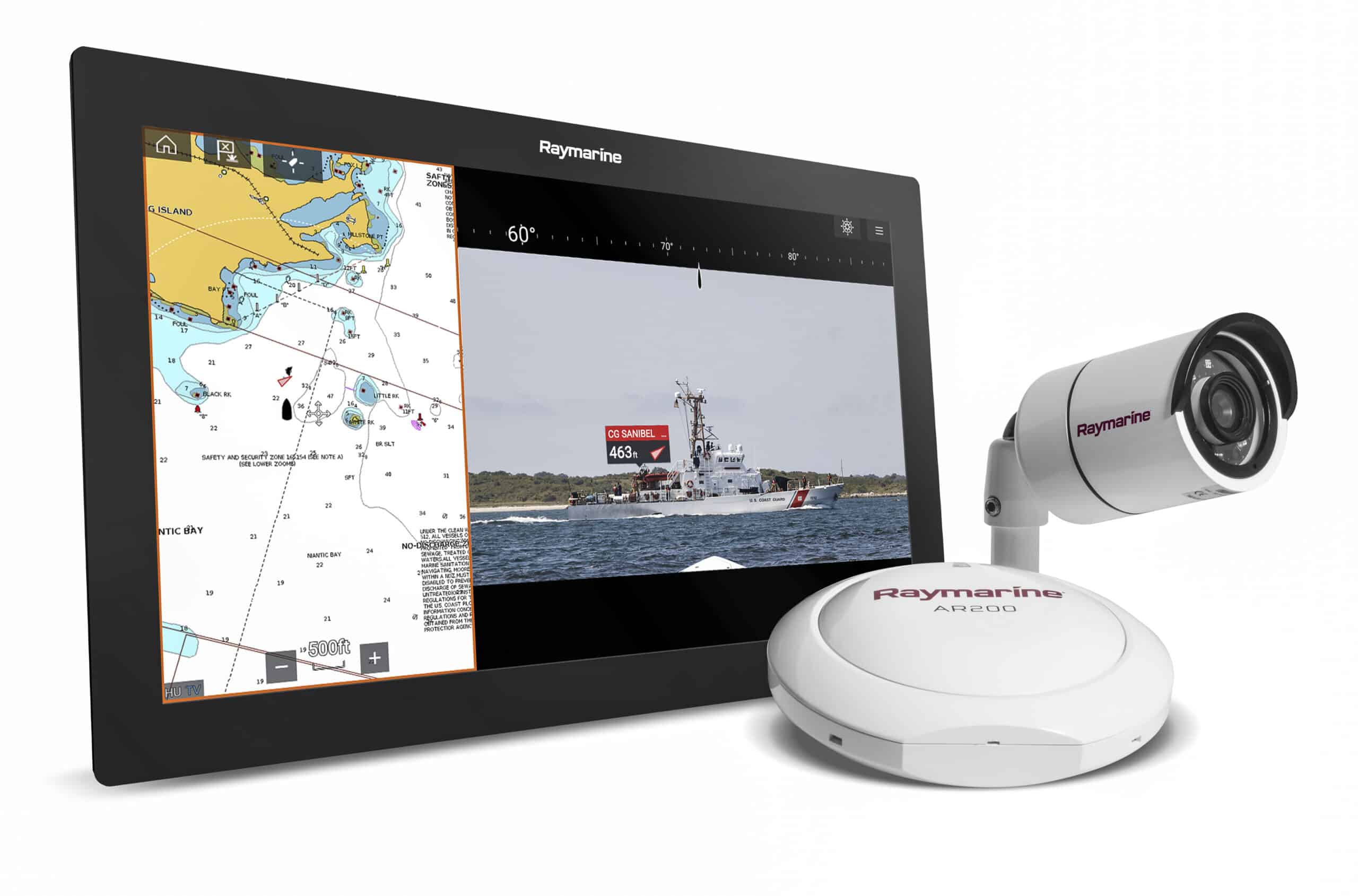 ClearCruise AR-videobeelden worden ondersteund door Raymarine CAM210 HD-marinecamera’s. Samen bieden ze beelden met toegevoegde realiteit vanuit elke camerapositie op het vaartuig. De AR200 omvat een GPS/GNSS-precisiesensor en dezelfde AHRS-technologie (Attitude Heading Reference Sensor) die wordt gebruikt in Evolution-stuurautomaten van Raymarine. Met ClearCruise AR worden navigatieboeien, AIS-verkeer (automatische identificatiesystemen), objecten en waypoints nauwkeurig weergegeven in overeenstemming met werkelijke beelden, zodat ze snel worden herkend en complexe navigatie en situaties met druk scheepvaartverkeer eenvoudiger in te schatten zijn.