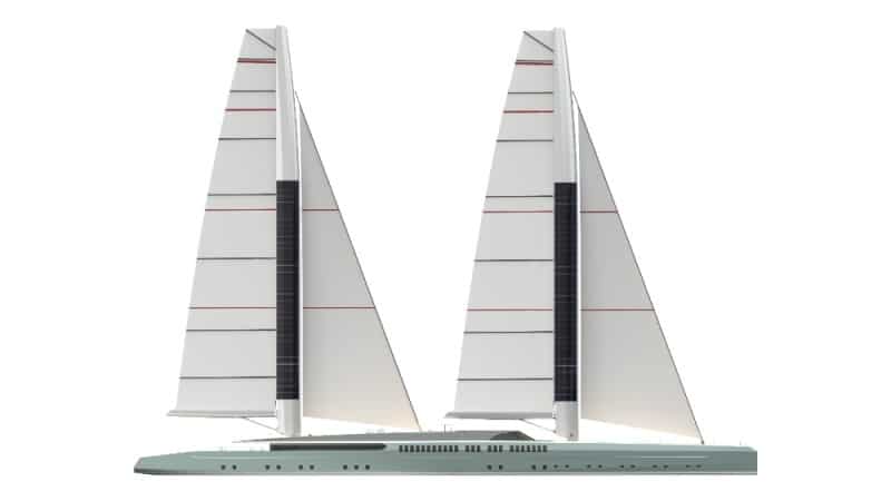 The concept features a highly advanced rig by Rondal, Royal Huisman’s neighbor. The wing masts have airfoil profiles. They are free-standing and rotate to provide robust, integrated airfoils with the sails. The airfoil’s shape can be remotely adjusted to add or reduce power.