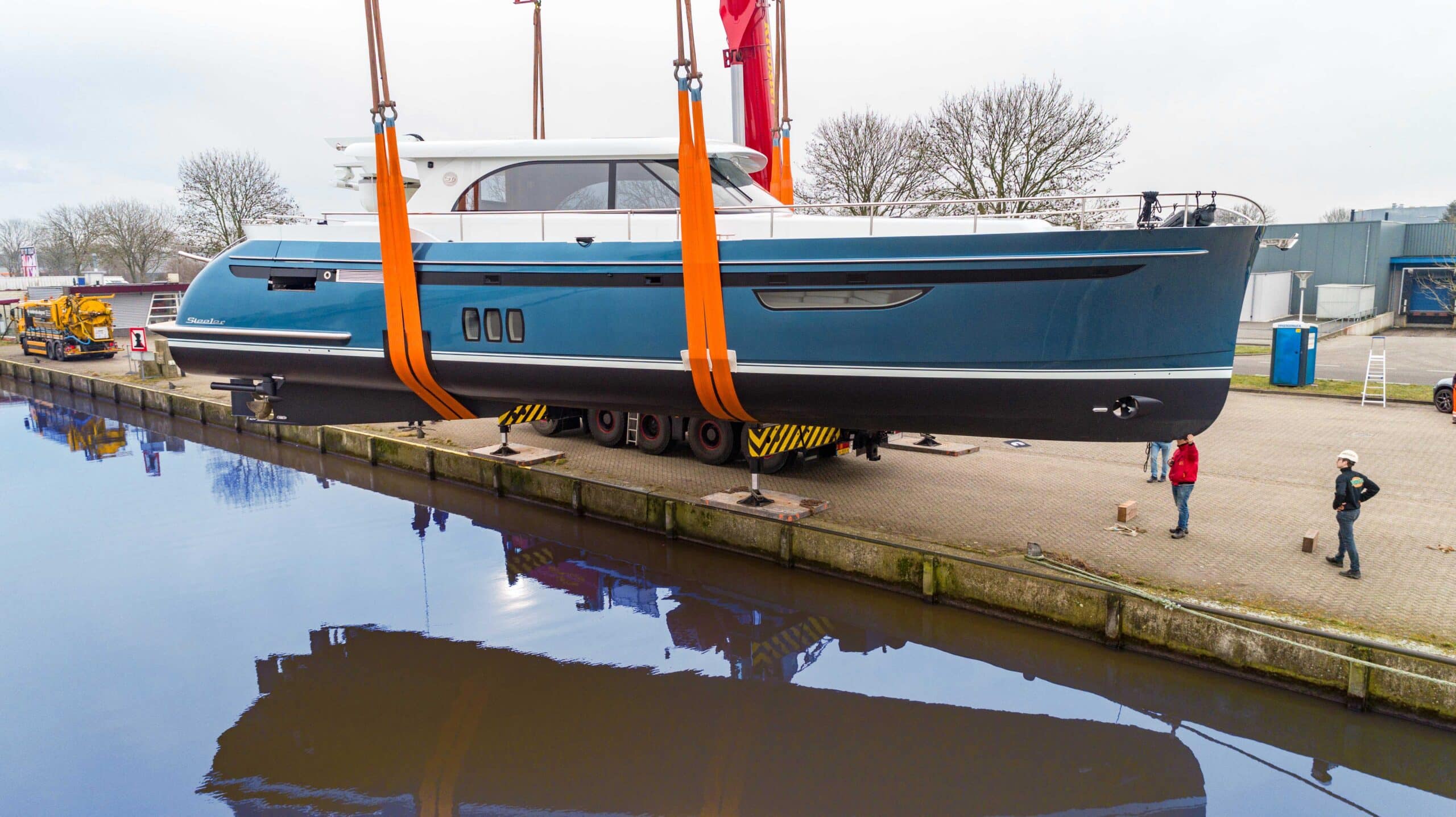 Steeler Yachts in Steenwijk liet maandag 12 maart drie motorjachten te water, waarvan de 19,5 meter lange NG65 S-line ‘Li-Janne’ het grootste schip is dat de Friese werf tot dusverre heeft gebouwd.