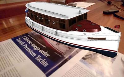 shanghaiThe Shanghai order came with specific client demands that steered the order to a yacht rather than a ship builder. Van Wijk had to come up with ample covers to block out the sun, spacious craft as these are experienced as luxurious in China and classic, baroque decorations. Van Wijk works with Virtual Reality presentations that let clients “walk” through a design. Or “augmented reality” displayed on a tablet for viewing by several people.