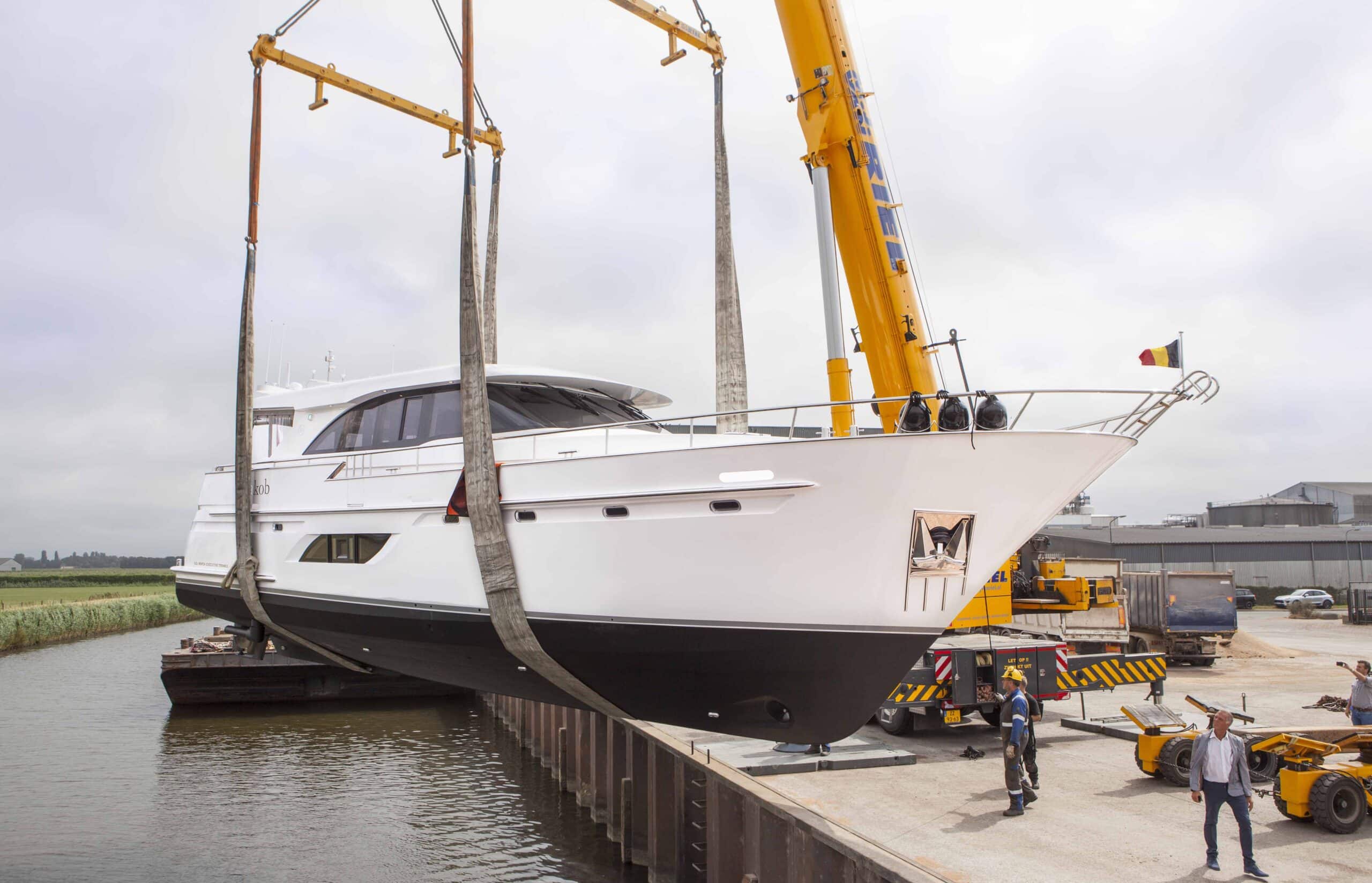 Bij Van den Hoven Jachtbouw in Waspik werd 10 juli een 17 meter motorjacht te water gezet. Voor de 400 tons-kraan van M.J. van Riel was het tillen van het 45 ton zware stalen schip een peulenschilletje. Over een week vindt de oplevering plaats en gaat de eigenaar ermee cruisen in Belgische en Nederlandse wateren.