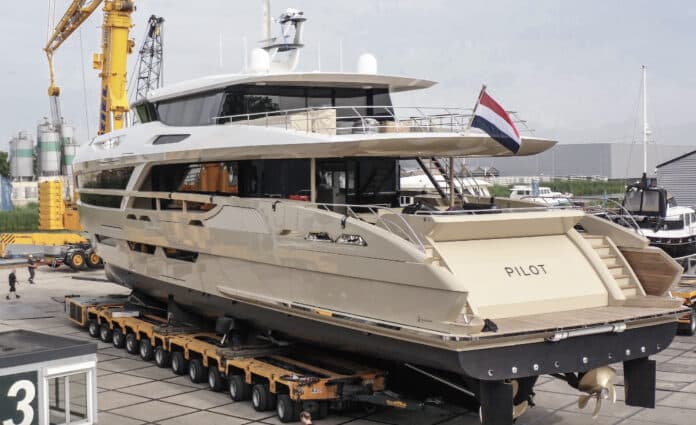 Van der Valk Shipyard in Waalwijk liet onlangs een 34 meter lang aluminium motorjacht uit de nieuwe custom Pilot-serie te water, het eerste schip is dat de werf onder de regels van het American Bureau of Shipping (ABS) heeft gebouwd.