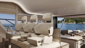 The yard calls the Edge 65 “a sporty blend of luxury cruiser and offshore speed machine.” Each outboard has four four-blade, fixed-pitch propellers—four right-handed and four left-handed, a configuration more common in America than in Europe. Expect more of that.