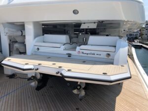 Een opvallend project was de Vanquish 32 Special Edition. De klant eiste een krachtige tender voor zijn grote jacht en Vanquish werd geselecteerd om deze te bouwen. De uitdaging? Zoals de foto laat zien, was er een zeer beperkte stahoogte in de tender bay, samen met een naar voren geschoven modeplaat die de bruikbare ruimte nog verder beperkte. Door nauwe samenwerking met de Vanquish-werf en de bemanning van het jacht konden we een ontwerp ontwikkelen dat precies bij de geometrie paste.