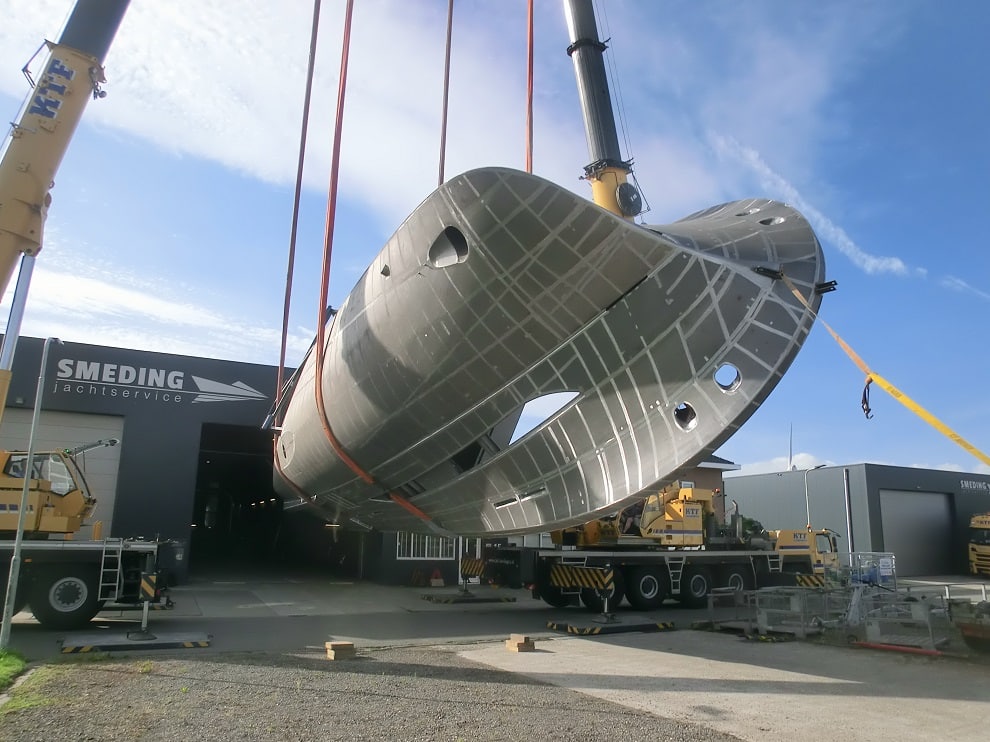 De bedrijvigheid bij cascobouwers is een goede graadmeter van de activiteiten in de hele jachtbouwsector. Wat dat betreft is alle drukte bij Smeding Jachtservice in Dronrijp een goed signaal. Daar werd onlangs het stalen casco van een ruim 22 meter lange Steeler Explorer gedraaid, waarvoor Studio Delta de naval architecture heeft verzorgd. Over circa vier weken zal het casco klaar zijn voor de volgende bouwfase. Smeding bouwt bovendien ook een tweede Steeler Explorer casco, van 26 meter. Daarnaast is een stalen Elegance 1440 Boarncruiser in aanbouw, evenals een 41 voet aluminium Bestevaer. Dit is wat er momenteel op de werkvloer staat, maar in het orderboek staan nog meer opdrachten.