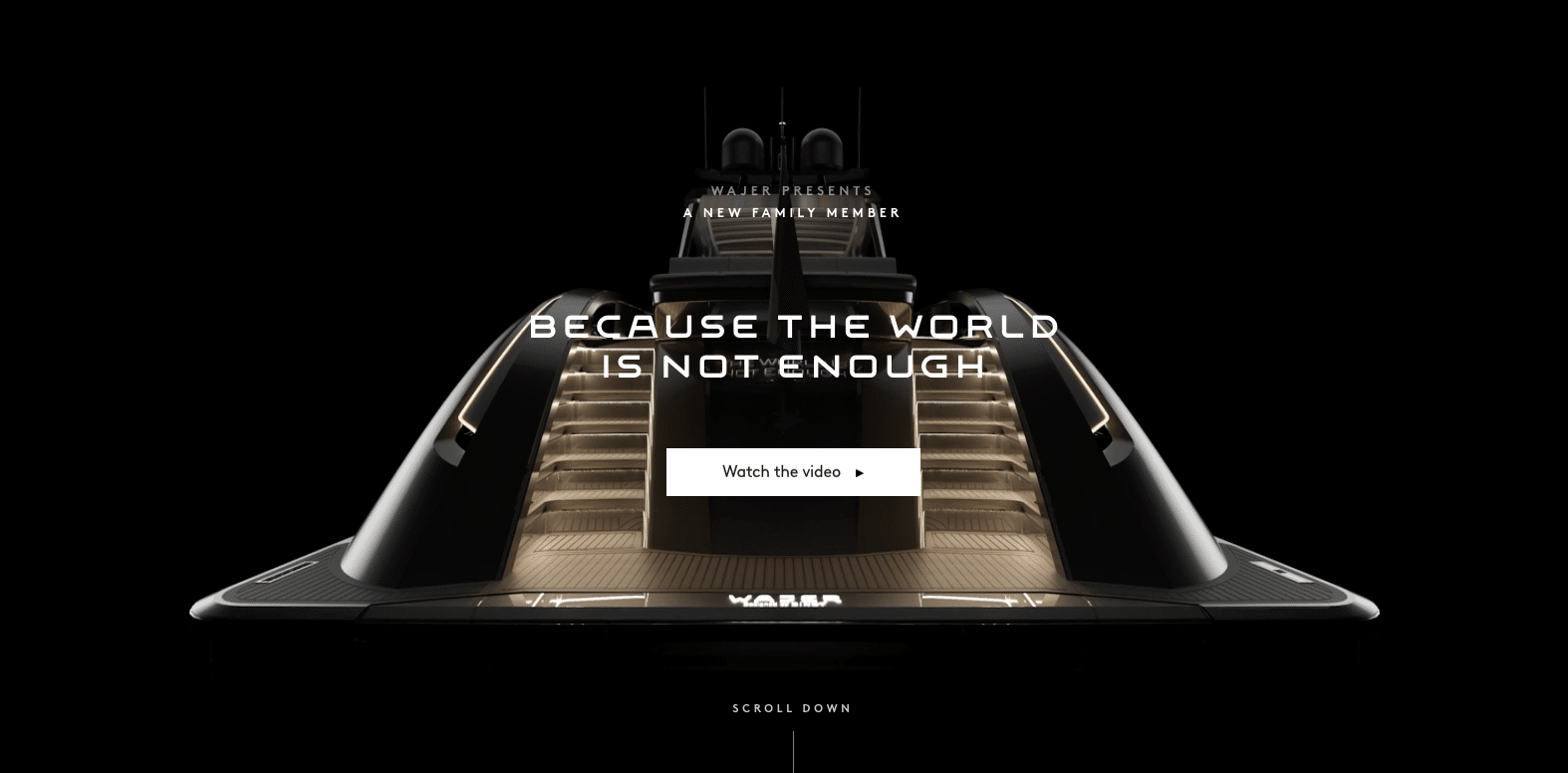 Met een ’teaser’ videoclip houdt Wajer Yachts uit Heeg de wereld in spanning over de lancering van een nieuw model. De titel van de videoclip is ‘Because the world is not enough’, wat een verwijzing is naar een James Bond-film uit 1999, met onder meer een spectaculaire achtervolging over het water. Gezien de beelden is het wel duidelijk dat het nieuwe ‘familielid’ veel groter is dan de huidige modellenreeks, waarvan de Wajer 55 met 16 meter de langste is.