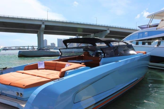 “Our high-end, high-performance motor yachts are built by hand using the very latest construction techniques,” says Vanquish founder Tom Steentjes. “We were at Miami because it brings in the high-profile clients we seek. We just opened space for berths, yacht servicing and storage at Pompano Beach, just north near Miami.”