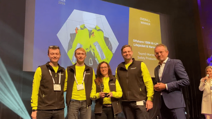 Arjen Jansen, senior lecturer at the TUDelft School for Industrial Design Engineering, presented the overall DAME Design Awards 2024 to the TeamO Offshore 150N Hi-Lift Lifejacket & Harness this morning. The judges also named eight category winners, nine Special Mentions and two Environmental DAME Design Awards winners.