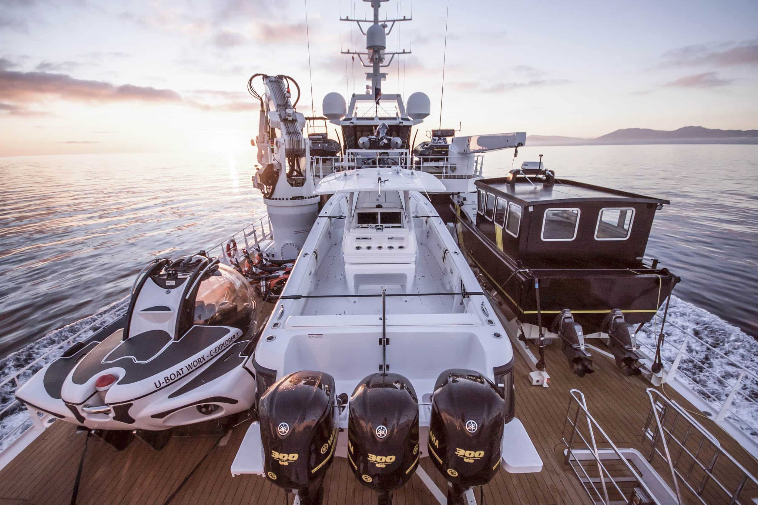 U-Boat Worx uit Breda leverde een custom-built C-Researcher onderzeebootje dat kan duiken tot 1100 meter diepte. Een Falcon onderwaterrobot van Saab Seaeye die tot 1100 meter kan gaan, completeert de uitrusting. Voorts is het helikopterdek volledig gecertificeerd en bevindt zich onderdeks een heli-hangar voor een Airbus H130 T2 helikopter, die is uitgerust met een Shotover 8k camerasysteem.
