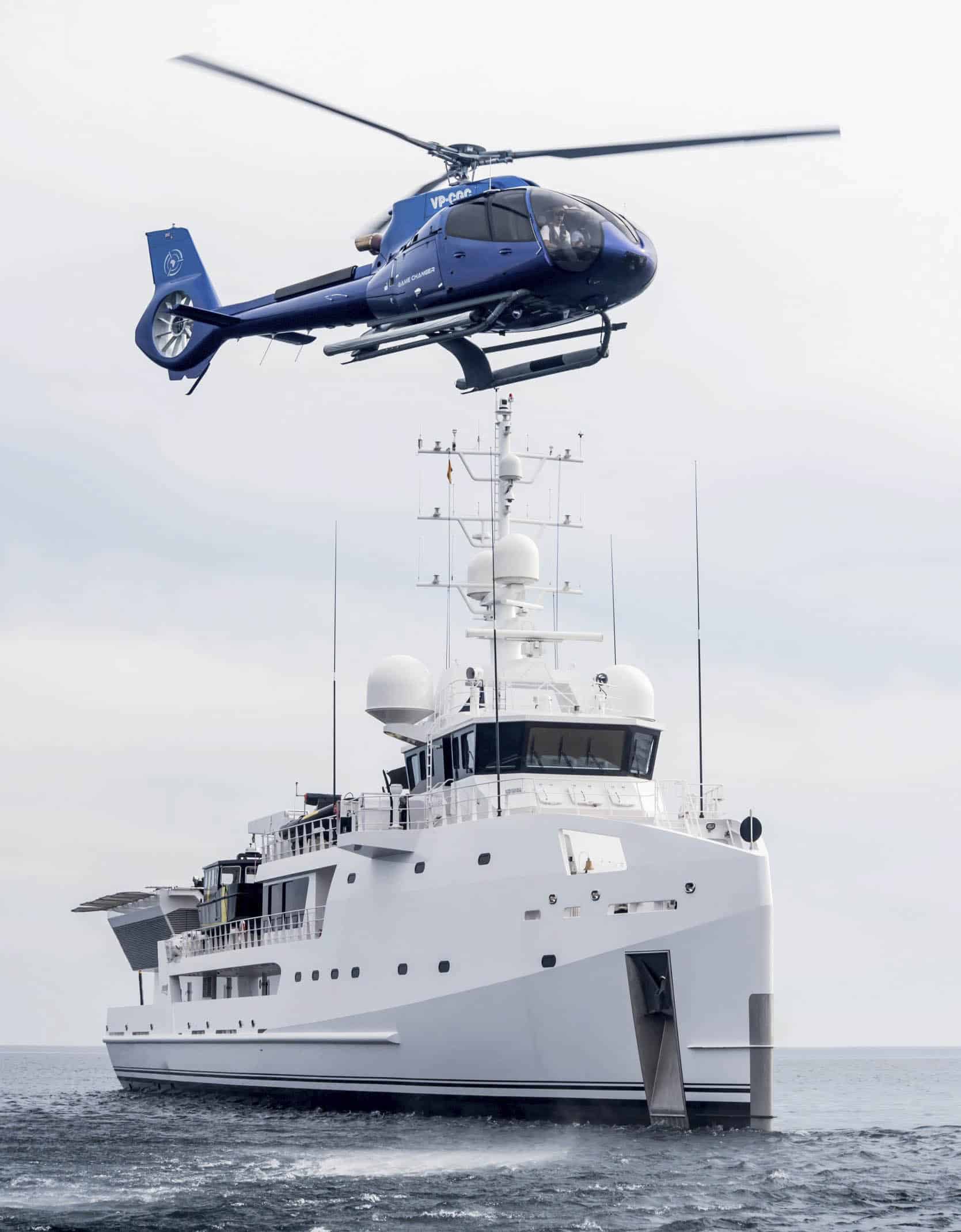 De Game Changer heeft een eigen helikopter aan boord, een Airbus H130 T2. Foto Tom van Oossanen
