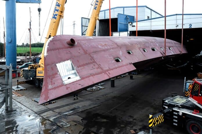 De bouw van het zevende jacht in de Martinique-reeks van Moonen Yachts heeft het kantelpunt bereikt. Onlangs werd de stalen romp van bouwnummer 205 gedraaid. Dat gebeurde bij Talsma Shipyard in Franeker waar onder meer casco’s van superjachten worden gebouwd. Het gaat om een Moonen 122 Martinique van 37,4 meter en 345 gross ton. Het schip zal naar verwachting worden opgeleverd in april 2025 en is door de werf op speculatie gebouwd. Het is nu in verkoop. Volgens Victor Caminada, commercieel directeur van Moonen, een ideaal moment voor een koper om in te stappen. Hij profiteert van een relatief korte levertijd en kan nog eigen wensen laten verwezenlijken. Bovendien koopt hij een beproefd concept, want vier varende zusterschepen hebben zich inmiddels op zee bewezen. Twee Martiniques worden momenteel afgewerkt voor oplevering in 2024.